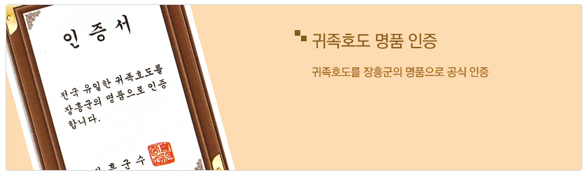 ▶ 인증내용 : 귀족호도를 장흥군의 명품으로 공식 인증​