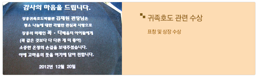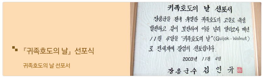 ▶ 내용 : 매년 11월 4일을 『귀족호도의 날』로 전세계에 선포함(선포자 : 장흥군수)