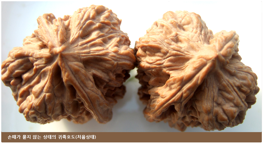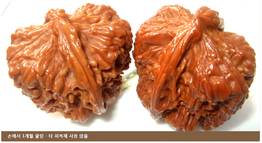 ▶일반 식용호도나 가래와는 전혀 다른 선현들의 오랜 역사와 경험의 축적에서 생긴 손 운동용, 건강용, 지압용 호도다.